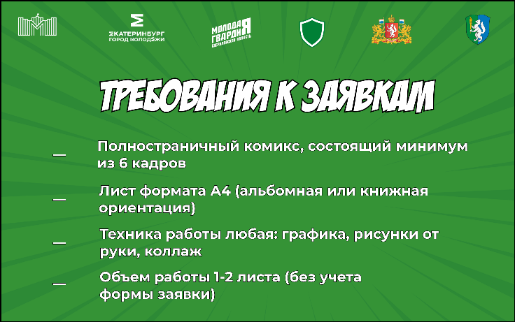«Молодая Гвардия» Свердловской области открывает новый сезон проекта «Урал без коррупции» конкурсом комиксов на антикоррупционную тему. Принять участие могут Учащиеся общеобразовательных организаций в возрасте от 14 до 18 лет; Студенты профессиональных образовательных организаций в возрасте от 16 до 20 лет; Студенты образовательных организаций высшего образования (далее – вузов) в возрасте от 18 до 35 лет.