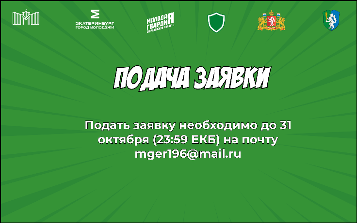Срок подачи заявки: до 31 октября (23:59 ЕКБ) на почту организаторов mger196@mail.ru